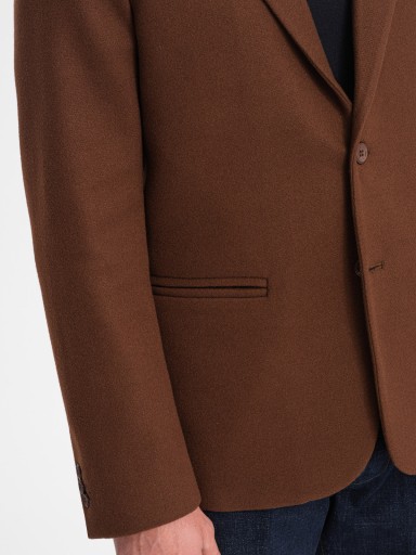 Marynarka męska casual z ozdobnymi guzikami na mankietach - czekoladowy brąz V1 OM-BLZB-0118 XXL