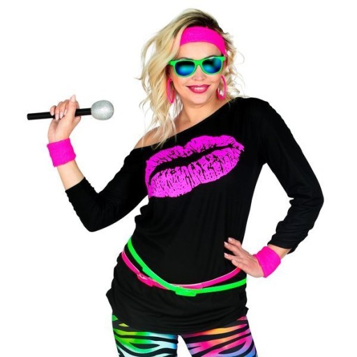 KOSZULKA CZARNA RÓŻOWE USTA LATA 80 xxl