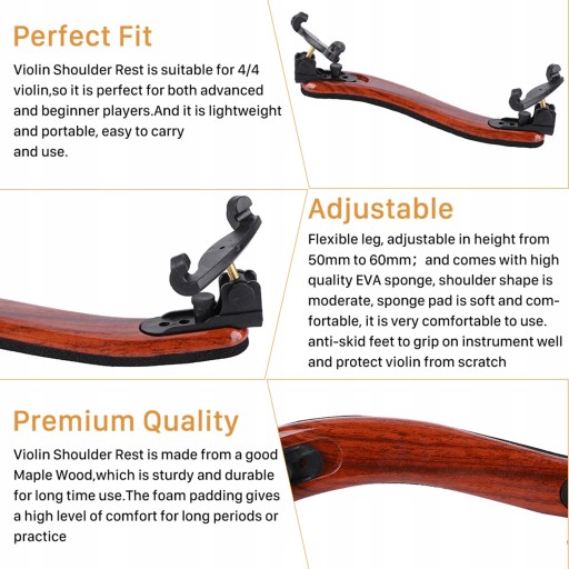 Lekki, regulowany pod?okietnik z drewna klonowego do skrzypiec skrzypcowych 3/4 4/4