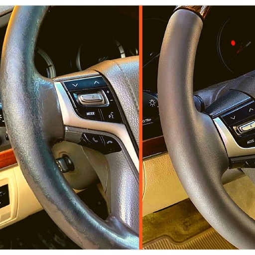Przetarć skórzanej i winylowej tapicerki (kierownicy, foteli, podłokietników, gałek zmiany biegów). Nie trzeba mieszać ani tworzyć farby samodzielnie. Ten zestaw jest gotowy do użycia od razu.