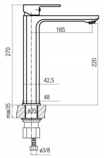 Bateria umywalkowa wysoka o wyjątkowej, czarnej, matowej powłoce. Wyposażona została w system LOW-FLOW (przepływ 4,5 l/min) oraz perlator z gumowym wykończeniem, który zapobiega osadzaniu się kamienia. Regulowany kąt wypływu wody daje możliwość precyzyjnego dopasowania strumienia do własnych potrzeb. System łatwego montażu EASY FIX znacząco skraca czas instalacji baterii.
