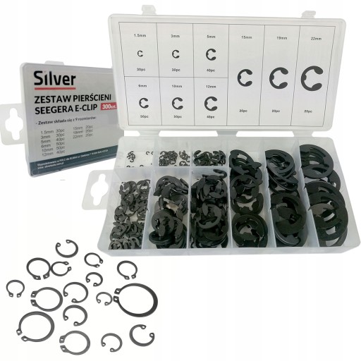 НАБОР КОЛЬЦЕВ SEEGER 300 ШТ. E-CLIP 1,5-22 ММ СЕРЕБРЯНЫЙ S10535