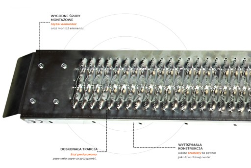 Stalowa rampa najazdowa posiada perforowaną powierzchnię najazdową zabezpieczająca koła przed ślizgeniem się.