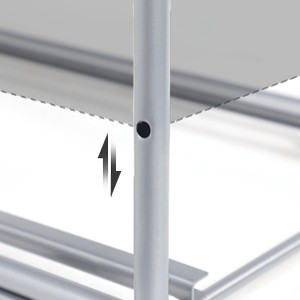 Konstrukcja regału pozwala na regulowanie wysokości położenia półek, każda wysuwana półka ma dwa możliwe poziomy montażu. Wysokość ustawienia półek oraz konfigurację ustawienia półek można dopasować do indywidualnych potrzeb użytkownika i zmienić je w dowolnym momencie.