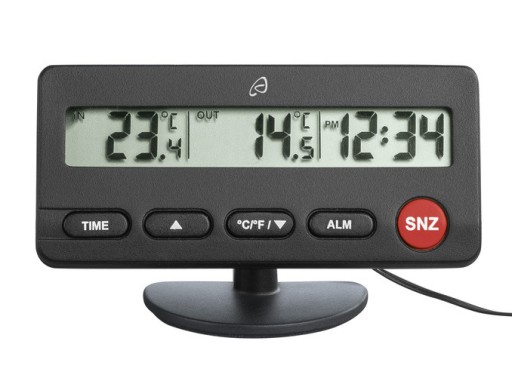Umożliwia pomiar temperatury wewnątrz lub na zewnątrz auta za pomocą czujnika na kablu.