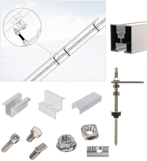 Elementy montażowe do paneli fotowoltaicznych różnią się w zależności od dachu, na którym ma znaleźć się konstrukcja. Ponadto, w przypadku dachów skośnych, elementy dobiera się również do rodzaju pokrycia dachowego.