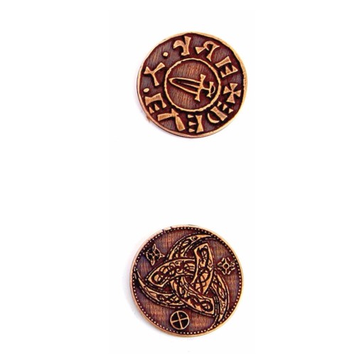 Wykonana ze stopów cynku precyzyjnie zdobiona moneta, którą otrzymaliśmy w podzięce za wzięcie udziału w jednej z wypraw łupieżczych na morzach północy.