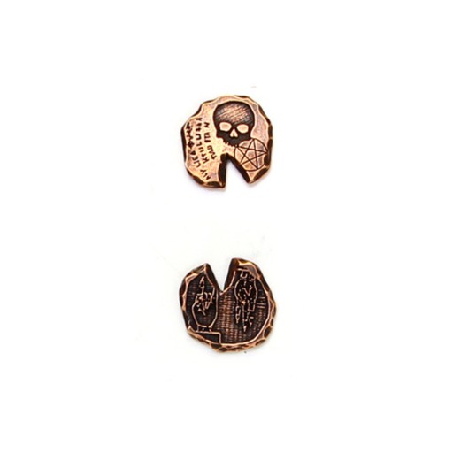 Wykonany ze stopów cynku zestaw 24 cudownych, ciężkich monet, które przedstawiają motywy związane ze śmiercią i okultyzmem.