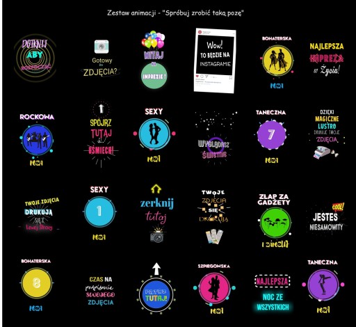 - Ponad 150 animacji tematycznych, które można łączyć ze sobą w dowolny sposób tworząc unikalną sekwencję dla każdej imprezy