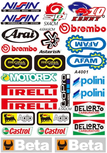 НАКЛЕЙКИ POLINI CASTROL NISIN BREMBO ДЛЯ ВЕЛОСИПЕДА МОТОЦИКЛА БОЛЬШОЙ НАБОР