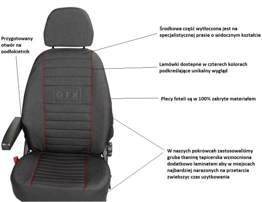 - Pokrowce w całości wykonane z grubej tkaniny (przód i tył foteli)