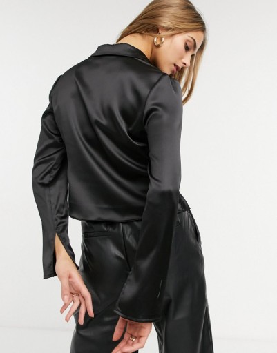 CZARNA SATYNOWA KOSZULA DAMSKA GŁADKA