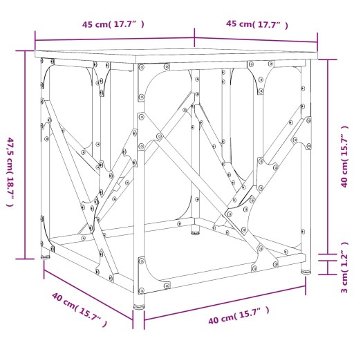 vidaXL Stolik kawowy, przydymiony dąb, 45x45x47,5 cm