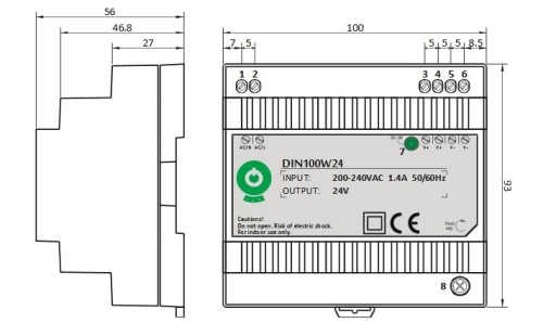 Zasilacz na szynę DIN DIN100W24 - Zasilacz stałonapięciowy o mocy 100W, idealny do profesjonalnych zastosowań. Ten europejski zasilacz oferuje szeroki zakres wartości napięcia wejściowego, aby dostosować się do różnych warunków sieciowych.