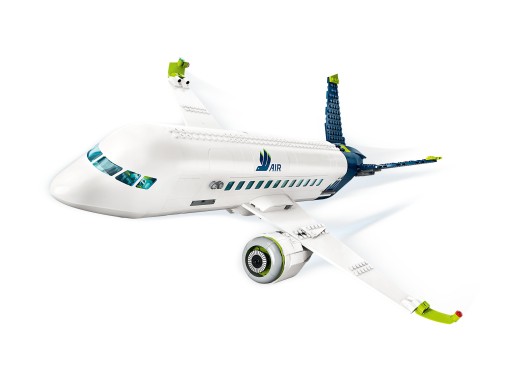 Elegancki statek powietrzny ma szczegółowe wnętrze z kokpitem, fotelami, przejściem i toaletą, a także jest wyposażony w schody, autobus lotniskowy, holownik, furgonetkę cateringową i furgonetkę z bagażami oraz dziewięć minifigurek zachęcających do zabawy.