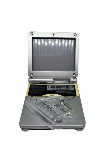 Zastępcza srebrna obudowa wraz z przyciskami oraz gumkami pod przyciski, śrubkami, osłonkami na śrubki ekranu, logiem na górną część obudowy oraz naklejką na tył.
