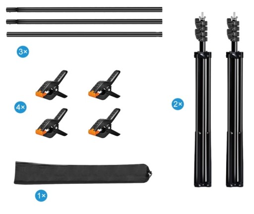 Profesjonalny zestaw dwóch statywów z poprzeczką marki pozwalający stabilnie zamocować tło fotograficzne. Dzięki regulowanej wysokości i szerokości świetnie sprawdzi się do różnych rozmiarów tła i zastosowań. Idealne rozwiązanie gdy chcesz zrobić zdjęcie produktu do sprzedaży, wypełnić przestrzeń za sobą podczas kręcenia vloga, czy videokonferencji, albo zrobić profesjonalne zdjęcie modowe na Instagrama. Dzięki składanej konstrukcji możesz go również zabrać do klienta.