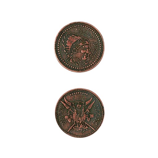 Wykonany ze stopów cynku zestaw 9 cudownych, ciężkich monet, który przedstawia motywy związane z dzikim zachodem.