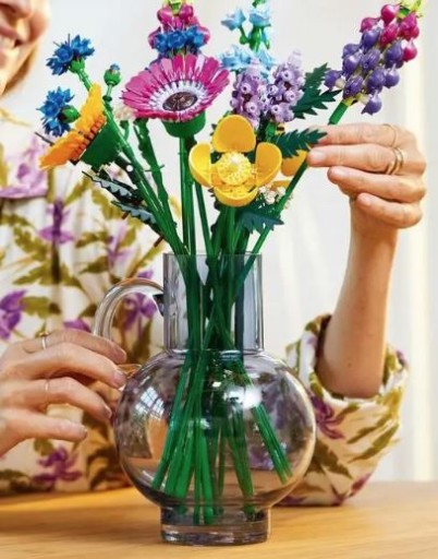 Złożony całkowicie ze szczegółowych klocków LEGO bukiet z polnych kwiatów obejmuje osiem gatunków kwiatów na regulowanych łodygach. Początkujący floryści i wielbiciele kwiatów mogą spędzić wiele godzin na budowaniu i odkrywaniu kwiatów inspirowanych chabrami, lawendą, makami walijskimi, trybulą leśną, paprocią skórzastą, gerberami, ostróżkami i łubinem.
