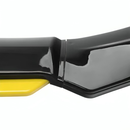 Uniwersalna dokładka zderzaka przedniego w kolorze czarnym z żółtą wstawką, odporna na warunki atmosferyczne.