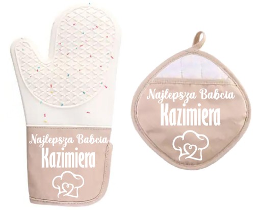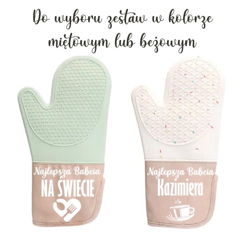 Zapraszamy do odkrycia niezwykłego zestawu rękawic silikonowych, idealnego prezentu dedykowanego na Dzień Babci, Matki lub dla bliskiej osoby. Ten wyjątkowy zestaw składa się z głównej rękawicy silikonowej oraz dodatkowej rękawicy w formie kwadratu, które zostały spersonalizowane z dedykacją, aby uczynić prezent jeszcze bardziej wyjątkowym.