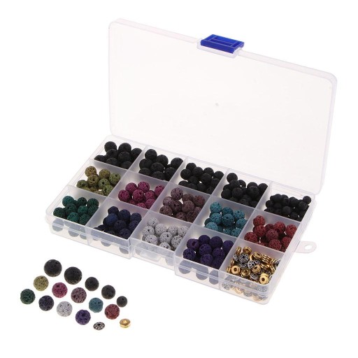 Naturalny kamień wulkaniczny rozmiary, 40 sztuk 6mm koraliki, 50 sztuk 8mm koraliki, 30oCS 10mm koraliki; 8mm 9 kamień wulkaniczny Każdy 20 sztuk, ze cynku złoto i srebrne dwa kolory każda 50 sztuk, w 400 sztuk koralików w jednym pudełku