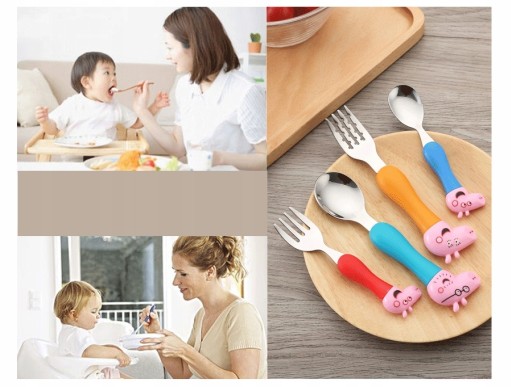 【Odpowiedni do samodzielnego karmienia】. Zestaw widelca i łyżki to idealna zastawa stołowa dla dziecka do nauki jedzenia. Łyżka ma odpowiedni rozmiar, aby pomóc dziecku w samodzielnym karmieniu. Łyżka jest okrągła i pozbawiona zadziorów, a końcówka widelca została specjalnie zaprojektowana, aby była bardzo gładka i chroniła wrażliwe dziąsła i zęby dziecka.