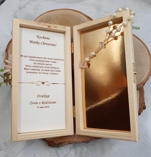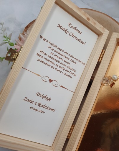 Przedstawiamy Państwu drewnianą skrzyneczkę jako formę podziękowania Chrzestnej, Chrzestnemu, Babci, Dziadkowi, gościom.