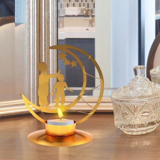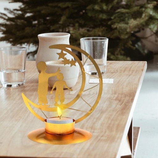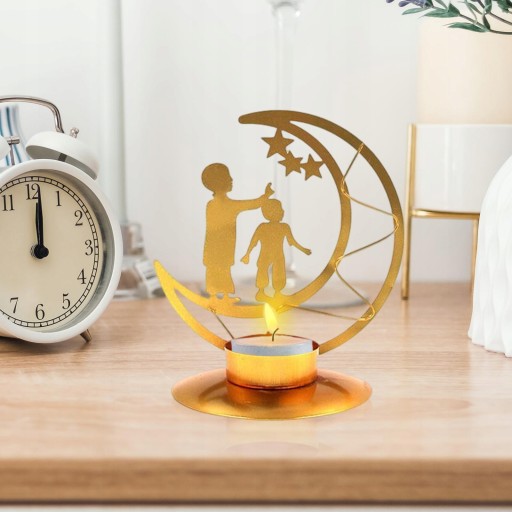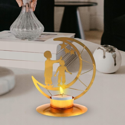 Cecha: Ten metalowy stojak na świece dekoracja ramadanu zaprojektowana z kształtem księżyca i gładką powierzchnią, nadająca się do świec wotywnych, świeczek do herbaty, świec filarowych i świec pucharowych.