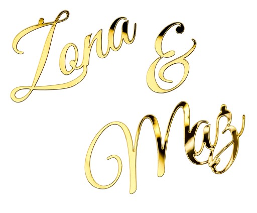 Napisy doskonale nadają się na ozdobę ślubu, wesela oraz innych uroczystości. Można je umieścić jako dekoracje na ściance za młodą parą. Produkt wykonany jest metodą cięcia laserowego ze złotego lustra. Istnieje możliwość wycięcia otworu ułatwiającego zawieszenie.