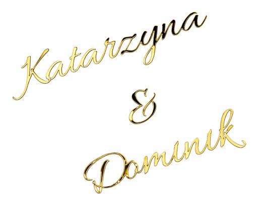 Napisy doskonale nadają się na ozdobę ślubu, wesela oraz innych uroczystości. Można je umieścić jako dekoracje na ściance za młodą parą. Produkt wykonany jest metodą cięcia laserowego ze złotego lustra. Istnieje możliwość wycięcia otworu ułatwiającego zawieszenie.