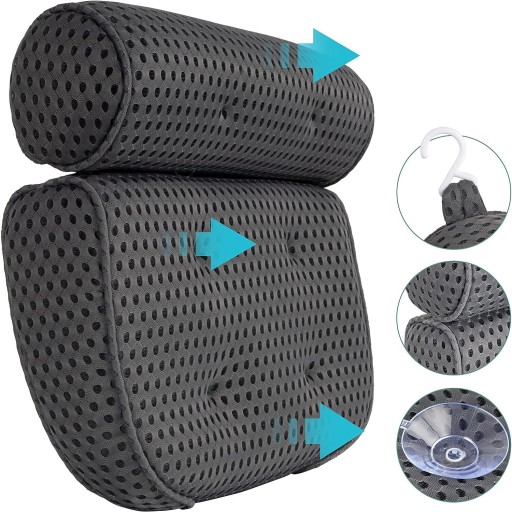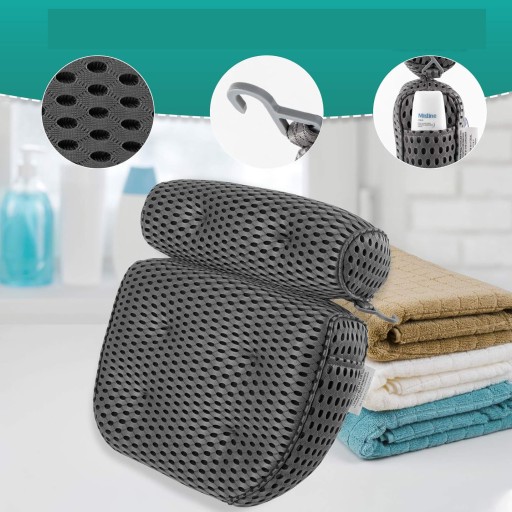 Poduszka do wanny z 6 przyssawkami, 6 mocnych przyssawek utrzymuje poduszkę wyjątkowo mocno. Jest zdejmowana, dzięki czemu można ją ustawić dla różnych rozmiarów ciała. co zapewnia, że poduszka pozostaje w żądanej pozycji. nasza poduszka przylega do wanny bez poślizgu, gdy używasz jej jako oparcia i zagłówka. Wspiera głowę i szyję, dzięki czemu możesz cieszyć się relaksującą i odprężającą kąpielą.