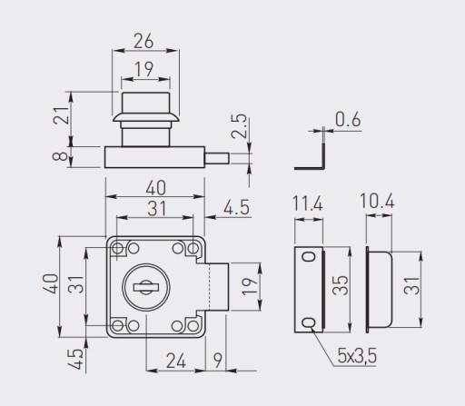 Замок мебельный GTV квадратный 4х4 см для стола/шкафа
