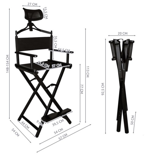 - STYLOWY DESIGN - dzięki temu, że krzesło do makijażu posiada czarny, uniwersalny kolor. Będzie prezentowało się wyjątkowo w każdym wnętrzu. Ponadczasowa prosta forma wykonania znakomicie będzie się komponować z każdym wystrojem. Jest to nowoczesne rozwiązanie, które daje mnóstwo przestrzeni do pracy osobom oferującym usługi mobilne. Dzięki swojemu nietuzinkowemu wyglądowi świetnie sprawdzi się również jako krzesło reżyserskie, które doskonale wyglądać będzie na każdym planie zdjęciowym i filmowym.