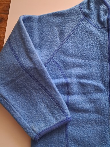 Super bluza/lekka kurteczka Mikk-Line, wykonana w 90% z wełny merino i 10% poliester, delikatna, nie "gryzie". Rozmiar z metki 110. Tkanina trochę grubsza, jakby z wełny gotowanej. Zapinana na zamek z wyższą stójką.