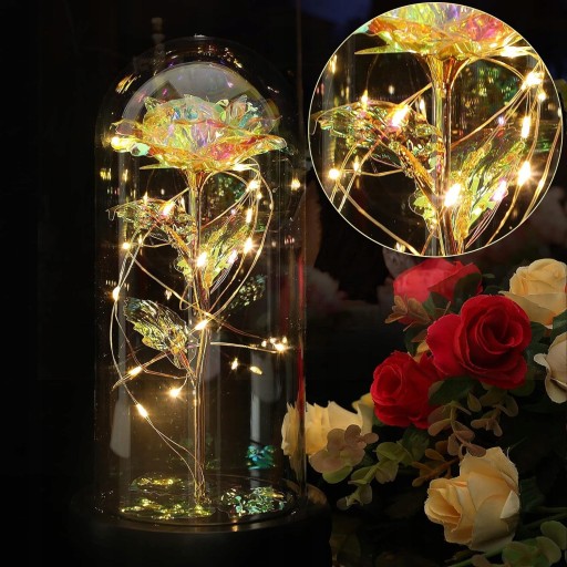 WIECZNA RÓŻA W SZKLE ŚWIECĄCA LED NA DZIEŃ KOBIET WALENTYNKI PREZENT