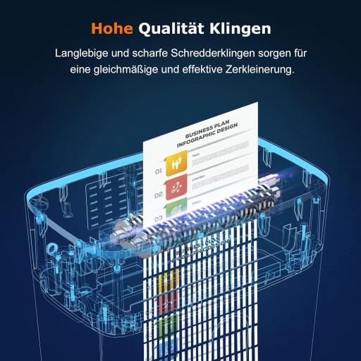 Wysoki poziom bezpieczeństwa P-4 – ta rozdrabniarka do papieru cięta krzyżowo tnie papier na drobne cząsteczki o wymiarach 5 x 18 mm i spełnia standardy bezpieczeństwa na poziomie P-4, aby chronić poufne informacje.