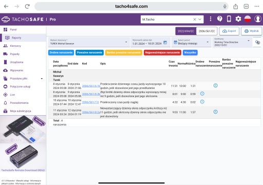 Z ogromnymi możliwościami - wykresy graficzne, naruszenia, zaświadczenie, przypomnienia o pobieraniu.