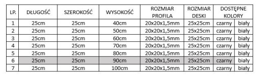 - wymiar deski: 25x25cm