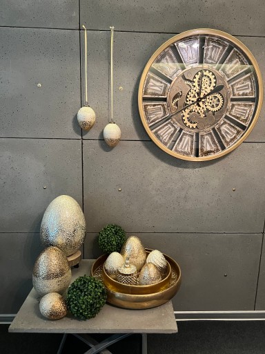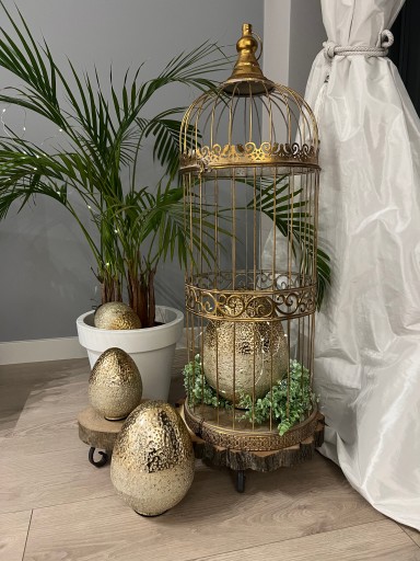 Niespotykane piękne jajo wielkanocne. Wykonane ze szkła, w kolorze złotym.