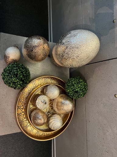 Bardzo starannie wykonane w złotym kolorze, które przy świetle połyskuje. Wzbudzi zainteresowanie i podziw każdego gościa.