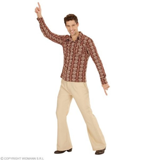 МУЖСКАЯ РУБАШКА ДИСКО, КОРИЧНЕВАЯ, 70-Е, xxl