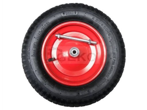Колесо KPL С ОСЬЮ для тачки, с трубкой 4.00-8/2PR красный обод G71012