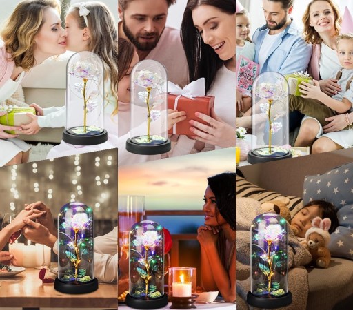 - ✔️Wszechstronność: Wieczna róża w szkle może być używana w różnych miejscach, takich jak dom, biuro lub jako prezent na specjalną okazję, taką jak ślub, rocznica lub Dzień Matki
