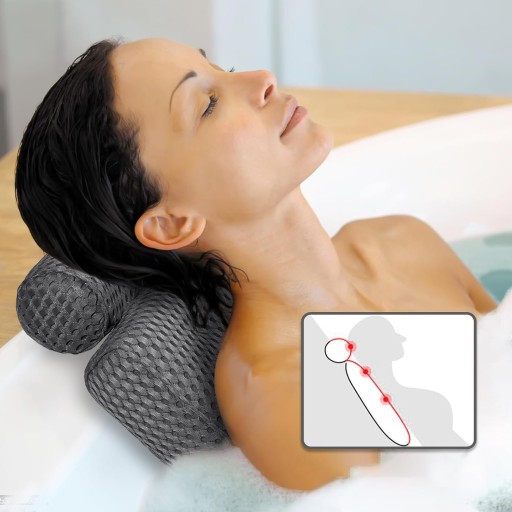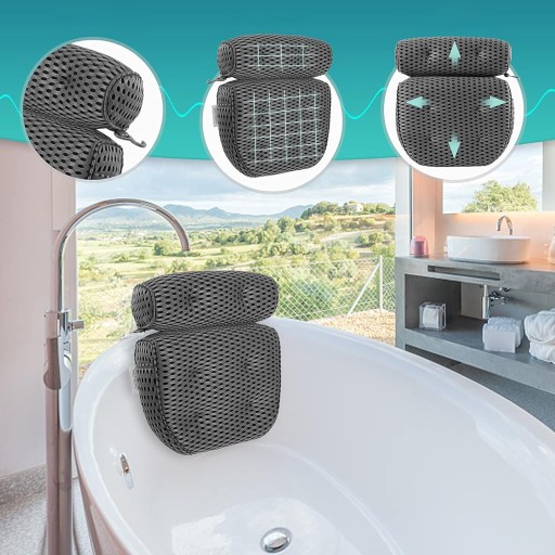 🛁 PODUSZKA DO KĄPIELI 4D AIR MESH ULTRA MIĘKKA Z 6 ANTYPOŚLIZGOWYMI PRZYSSAWKAMI DO WANIEN Z HYDROMASAŻEM