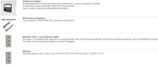 Wszystkie szuflady są wyposażone w czarny uchwyt na etykiety, który umożliwia etykietowanie w celu identyfikacji i lokalizacji akt.