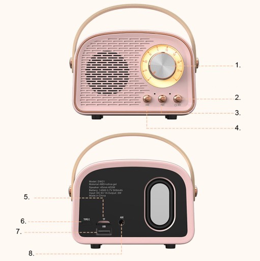 Wyposażony w zaawansowaną technologię, kompatybilną ze wszystkimi urządzeniami bluetooth. Dzięki zaawansowanej technologii Bluetooth 5.0 i dużemu zasięgowi połączenia ten retro głośnik Bluetooth łączy się z urządzeniem bardzo szybko. Super mini, ale super głośno. Urządzenie umożliwia odbieranie połączeń!