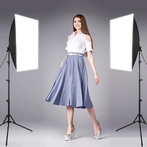 Profesjonalny zestaw 2 lamp studyjnych softbox do fotografii, filmu, nagrań. Stworzony z dbałością o każdy szczegół. Całość postawiona na dwóch mocnych statywach.