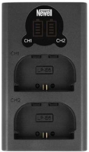 2) Ładowarka Newell dwukanałowa LCD do LP-E6 do aparatów marki Canon