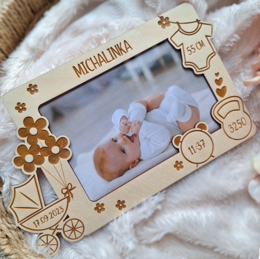 DREWNIANA RAMKA NA ZDJĘCIE METRYCZKA DZIECKA